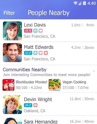 それは、より少ない機能(特にプライバシー設定)で、Facebookと非常によく似ています。離れて設定する唯一のことは、距離とコミュニティの作成によって人々をフィルタリングする能力です。